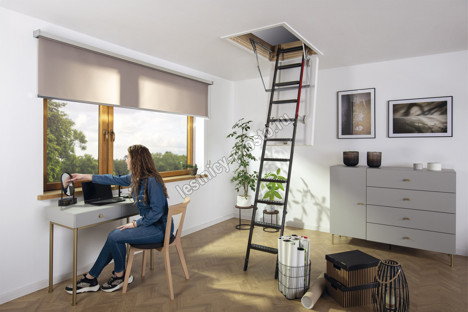 Супертеплоизоляционная металлическая чердачная лестница FAKRO LMT 70×140 см, h-305 см