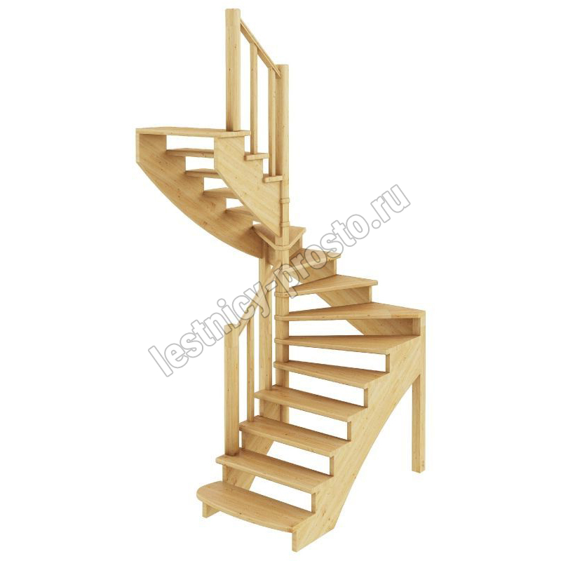 Базовый комплект включает в себя деревянные элементы лестницы и ограждения без какого-либо покрытия.
