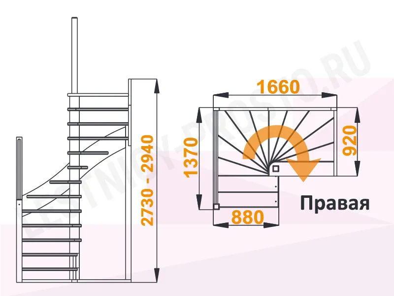 Схема лестницы К-005М/1 с поворотом направо