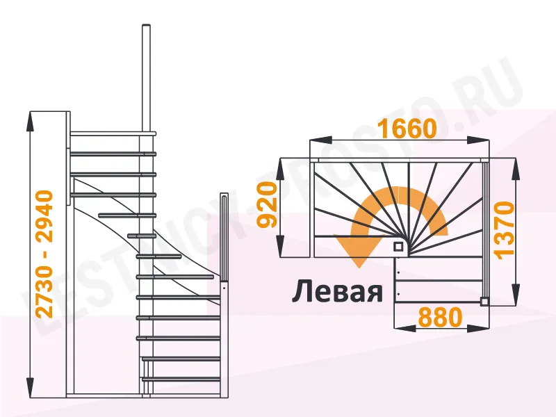 Схема лестницы К-005М/1 с поворотом налево