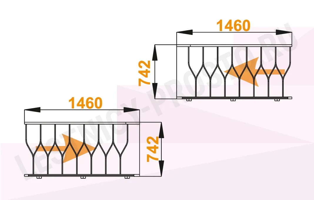Габариты в плане 1460 x 742 мм