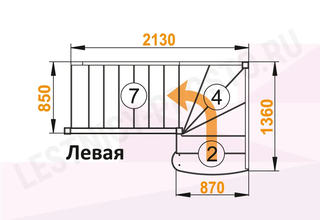 Схема лестницы ЛС-07М/4 с поворотом налево