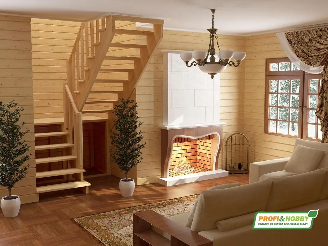 Ступени и поручень лестницы выполнены из дуба, остальные элементы из сосны. Возможно изготовление данной модели полностью из дуба.