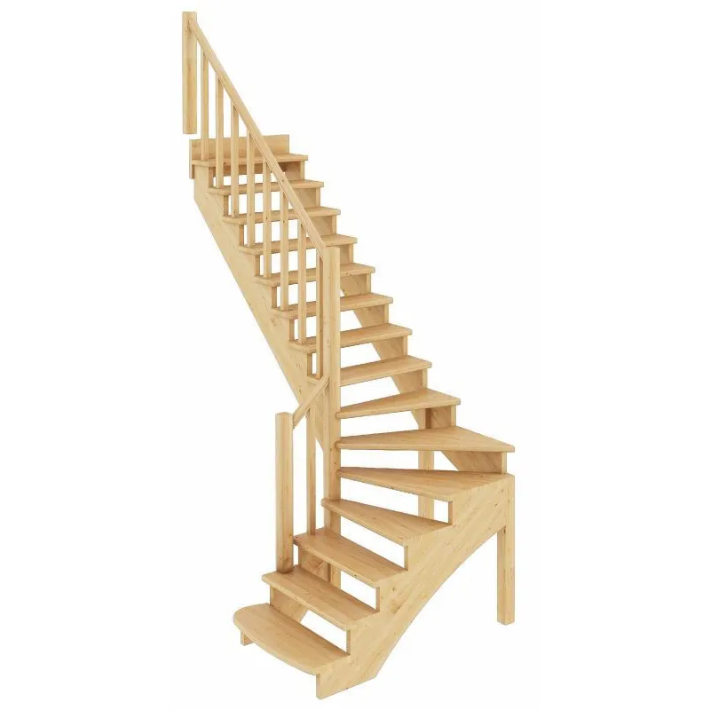 Базовый комплект включает в себя деревянные элементы лестницы и ограждения без какого-либо покрытия.