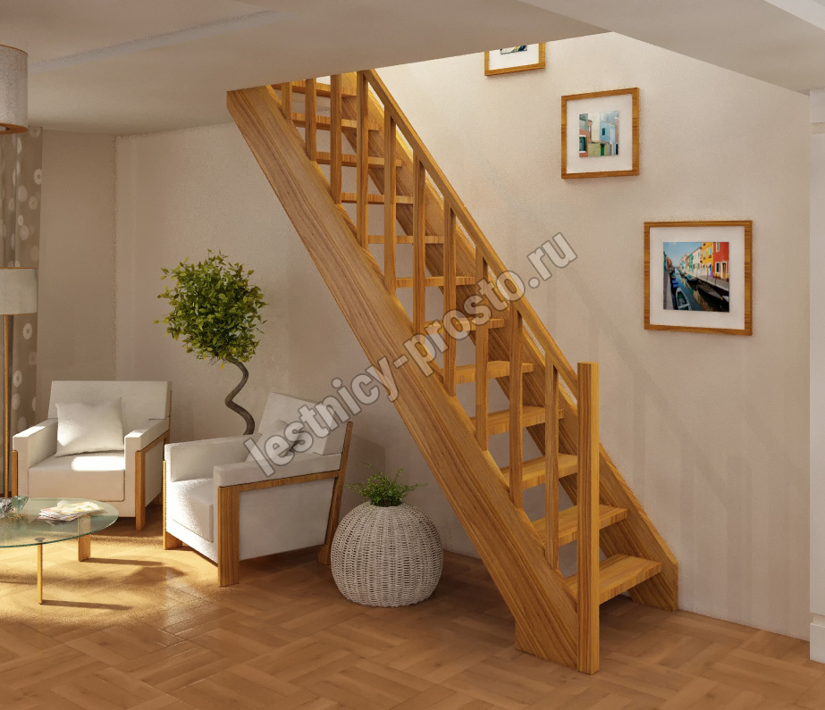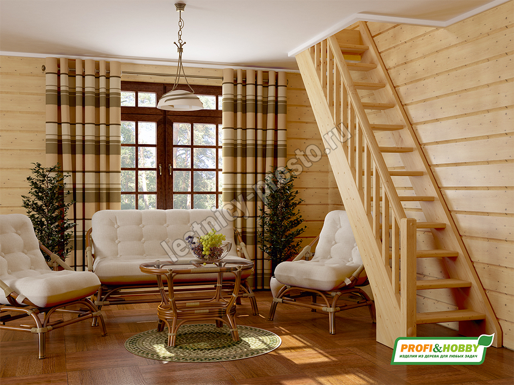 В производстве лестницы ЛС-10м под покраску используется сосна с небольшими изменениями цвета, что практически не влияет на ее механические свойства и почти незаметно при покраске в темные цвета. Базовый комплект включает в себя деревянные элементы лестницы и ограждения без какого-либо покрытия.