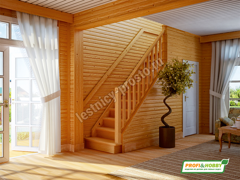 В производстве лестницы ЛС-215м под покраску используется сосна с небольшими изменениями цвета, что практически не влияет на ее механические свойства и почти незаметно при покраске в темные цвета. Базовый комплект включает в себя деревянные элементы лестницы с подступенками и ограждения без какого-либо покрытия.