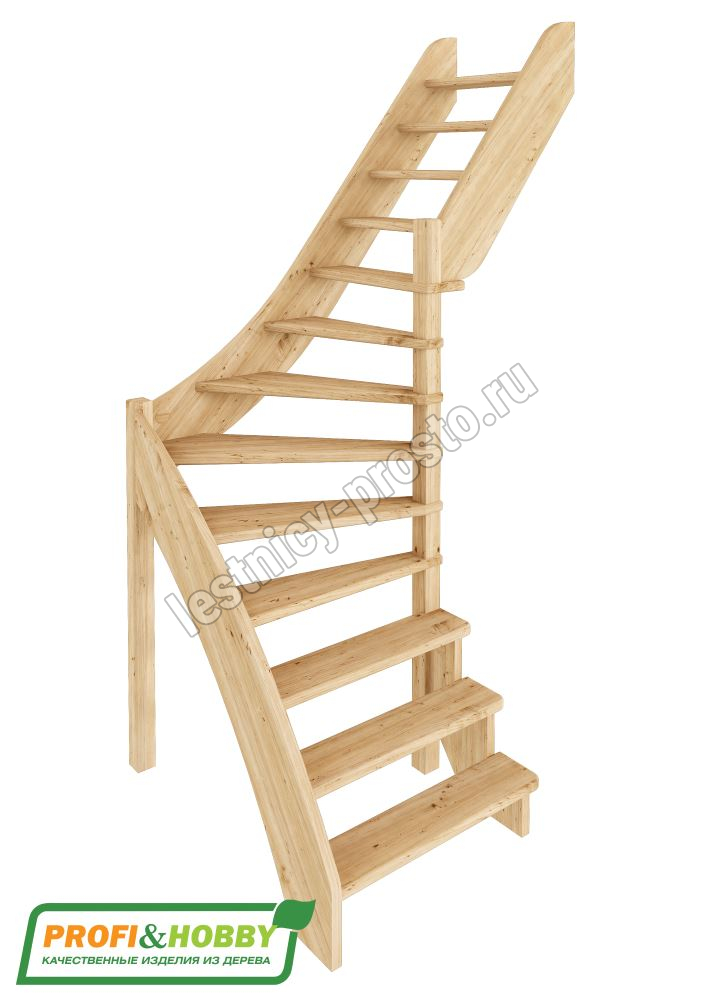 Базовый комплект включает в себя деревянные элементы лестницы без какого-либо покрытия.