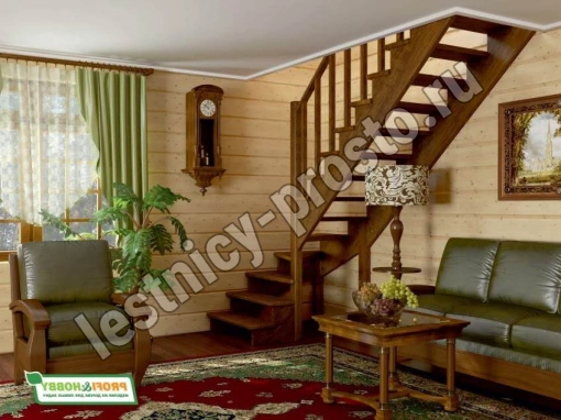 Поворот лестницы на 90 градусов выполнен с помощью 4-х забежных ступеней. Первая ступень лестницы - пригласительная (скруглены внешние углы)