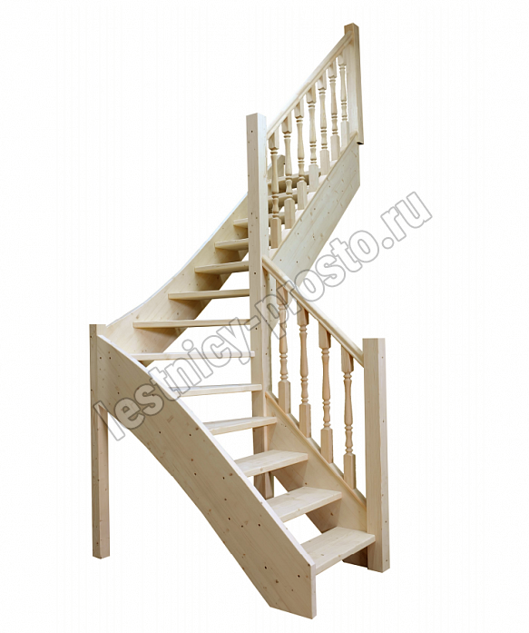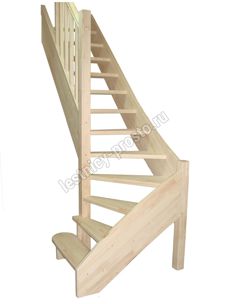 Лестница Универсал изготавливается как с поворотом направо, так и с поворотом налево. Под заказ возможно изготовление лестницы Универсал с высотами этажа: 2300 мм, 2500, мм, 2700 мм, 2900 мм, 3100 мм. В стандартной комплектации лестница поставляется в натуральном цвете, то есть без окрашивания. Первая ступень может быть пригласительной (со скругленными краями или прямой). Базовые ограждения можно заменить на ограждения любого другого вида.