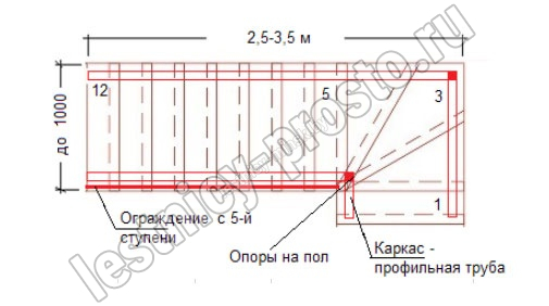 Комплект для г-образной лестницы на металлокаркасе PROSTO DUE или PROSTO DOUBLE из 12 ступеней. <br>