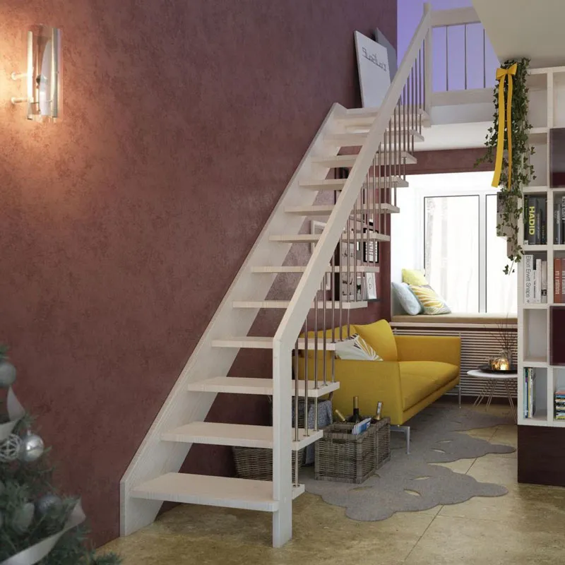 В комплекте: столбы и профильный поручень из бука без какого-либо покрытия, комплект из 3 стальных ригелей (окрашены в цвет каркаса или хром по желанию) диаметром 12 мм. Вы можете заказать у нас предварительную профессиональную покраску деревянных элементов в любой цвет.