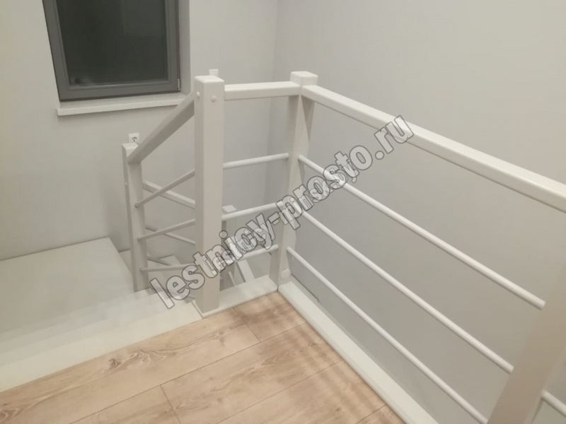 В комплекте: 3 прямых деревянных столба без какого-либо покрытия и профильный поручень без покрытия, комплект из 3 ригелей из стали (окрашены в цвет каркаса или хром по желанию) диаметром 12 мм., необходимая фурнитура.
