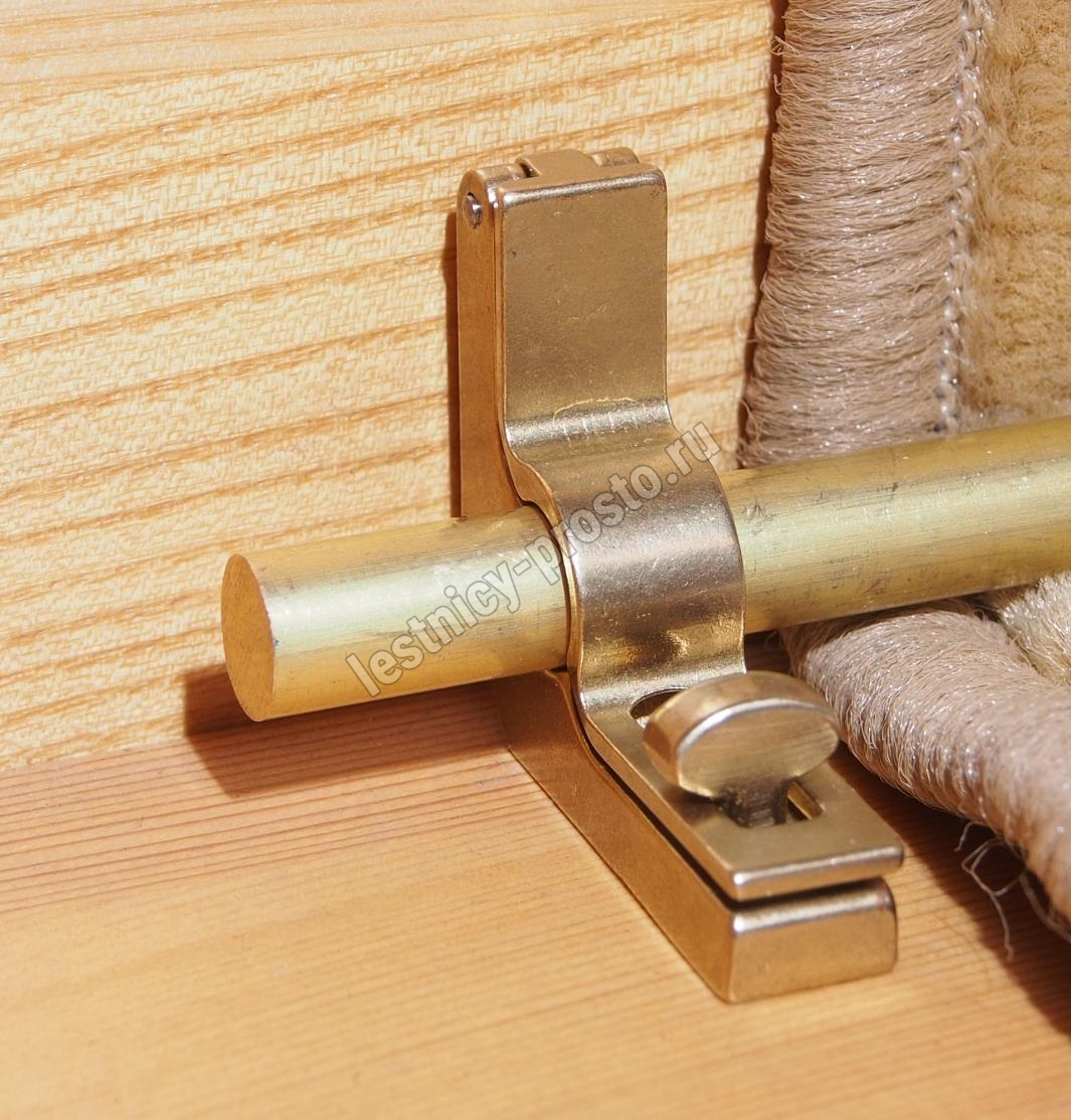 Ковродержатель комплектуется двумя держателями из латуни цвета золото, а также цельным прутком из латуни длиной от 101 до 130 см. Конструкция является сборно-разборной не требующей демонтажа креплений, что делает ее долговечной и очень удобной для чистки ковров и ковровых покрытий.
