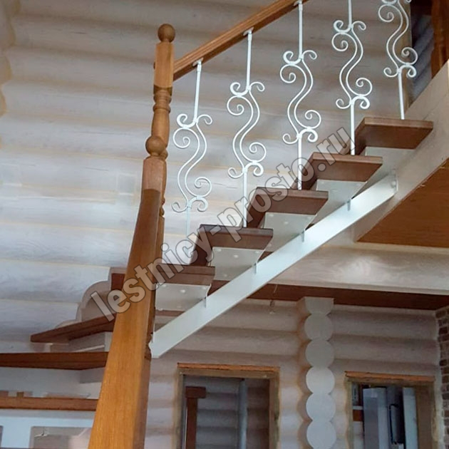 Лестница PROSTO MONO Г-образная h315 см, ступени лиственница