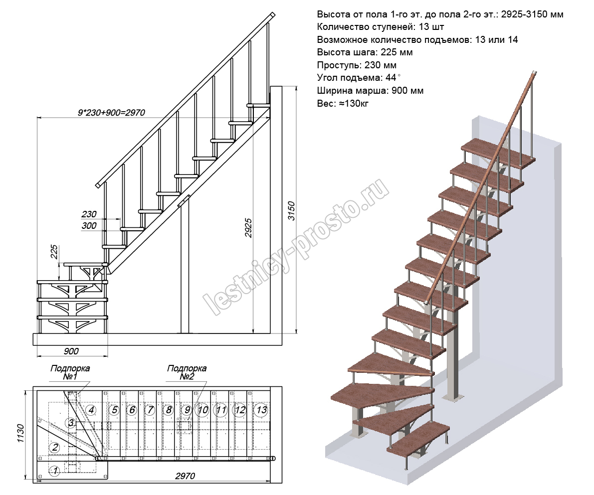 Под заказ возможно изготовление каркаса лестницы PROSTO MONO с поворотом начинающимся с любой ступени, а также, возможно реализовать поворот через площадку. Звоните нам по любым возникающим вопросам, мы поможем сориентироваться и сделать правильный выбор.