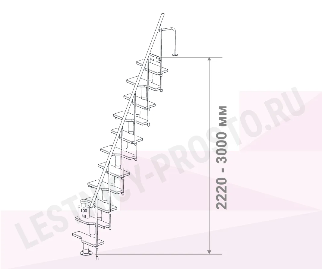 С помощью дополнительных секций (ступень + стальной модуль + фрагмент ограждения) можно увеличить высоту базовой модели до 3750 мм.