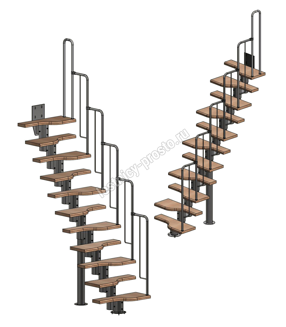 - Регулируемый по высоте в пределах 180-240 мм модуль. Большой диаметр и толщина металла деталей обеспечивают жесткость и прочность конструкции. Регулировка каждого модуля по высоте позволяет легко приспособить лестницу под ваше помещение.