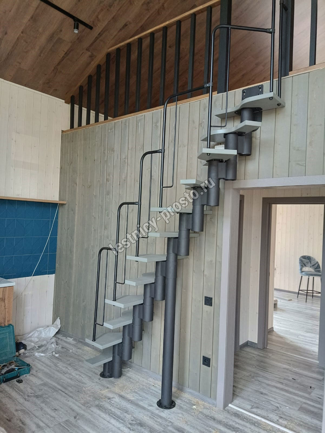 соответствует картинке, но вы не ограничены в его выборе. Лестницу можно приобрести и без ограждения, и с любым другим. Устанавливать на такую лестницу можно почти всё, начиная от классических деревянных балясин и заканчивая эксклюзивными коваными изделиями.