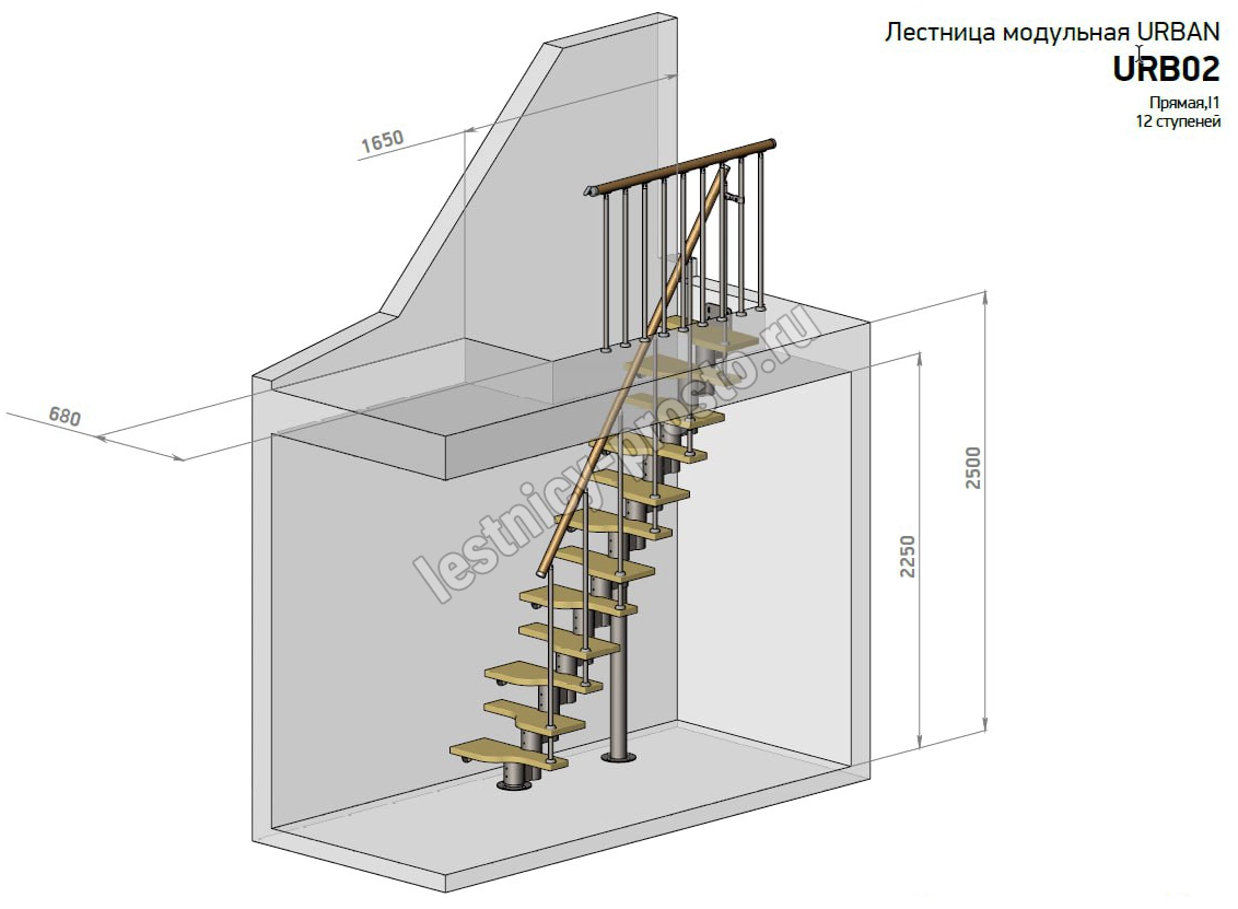 Высота лестницы 1980 - 2880 (11 ступеней) мм