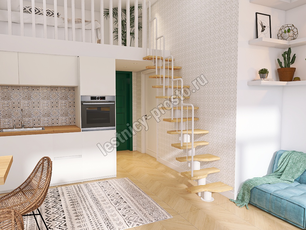 Лестница Prosto Urban White гусиный шаг 700 мм, h180-264 см (10 ступеней), ясень