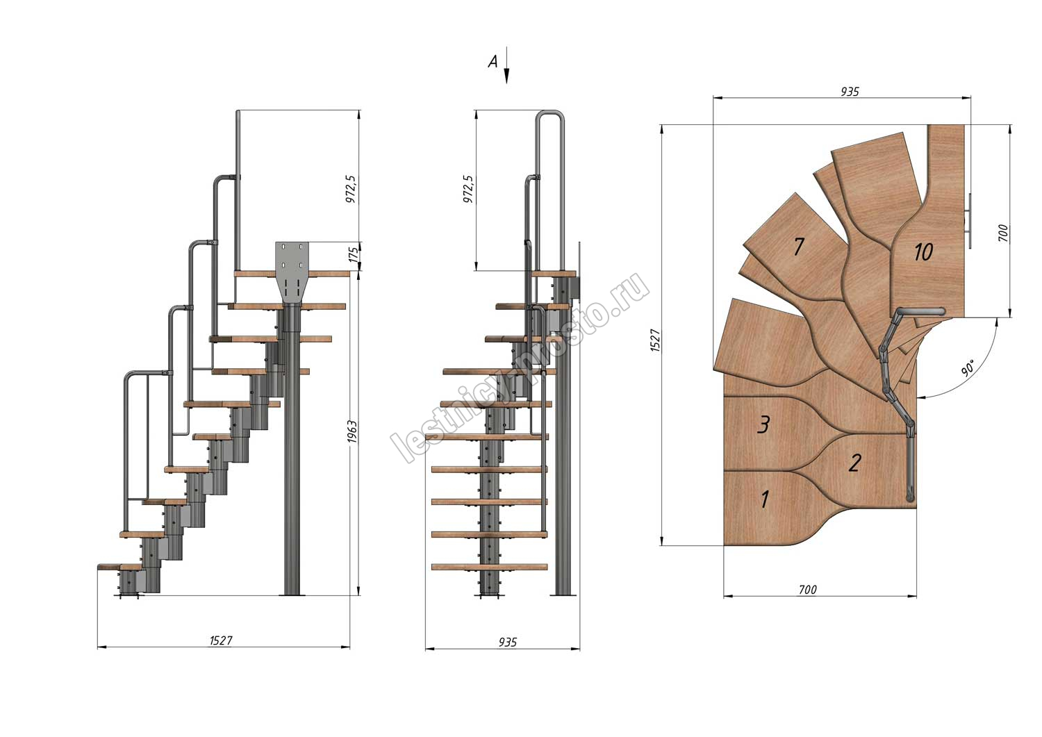 Высота лестницы 1800 - 2640 (10 ступеней) мм