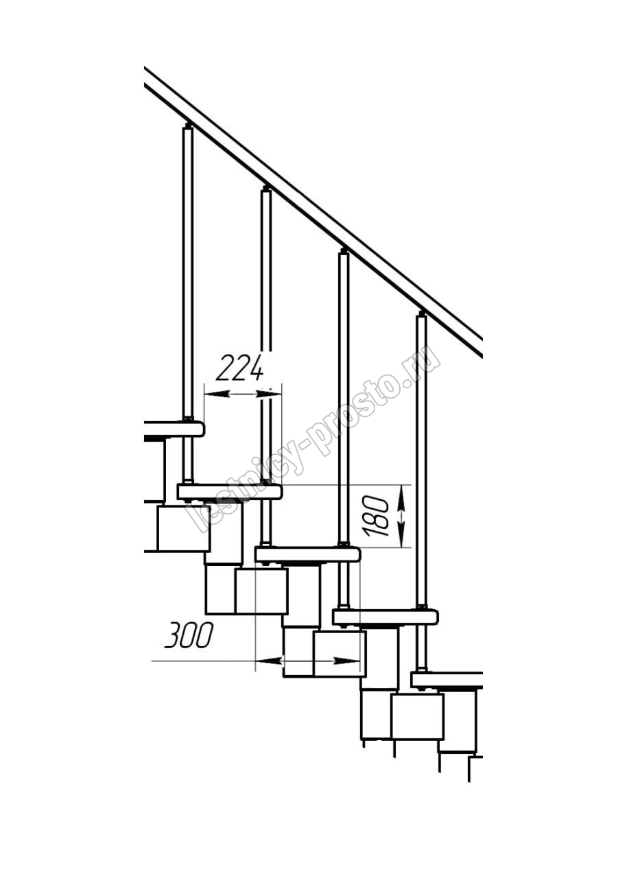 Модульная лестница Фаворит 180 2160-2280, Черный, Лиственница, Нержавеющая сталь