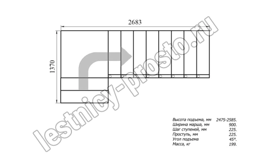 Модульная лестница Статус 225 2475-2585, Серый, Сосна, Крашеная, Без Ступений