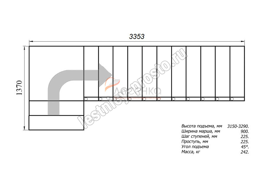 Модульная лестница Статус 225 3150-3290, Черный, Сосна, Крашеная, Без Ступений