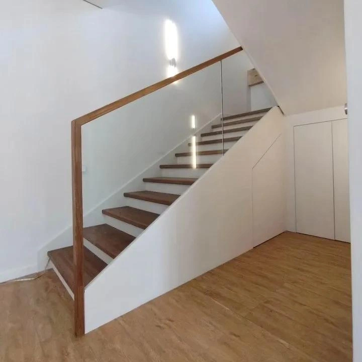 Лестница на второй этаж с ограждением из стекла LP-1-4
