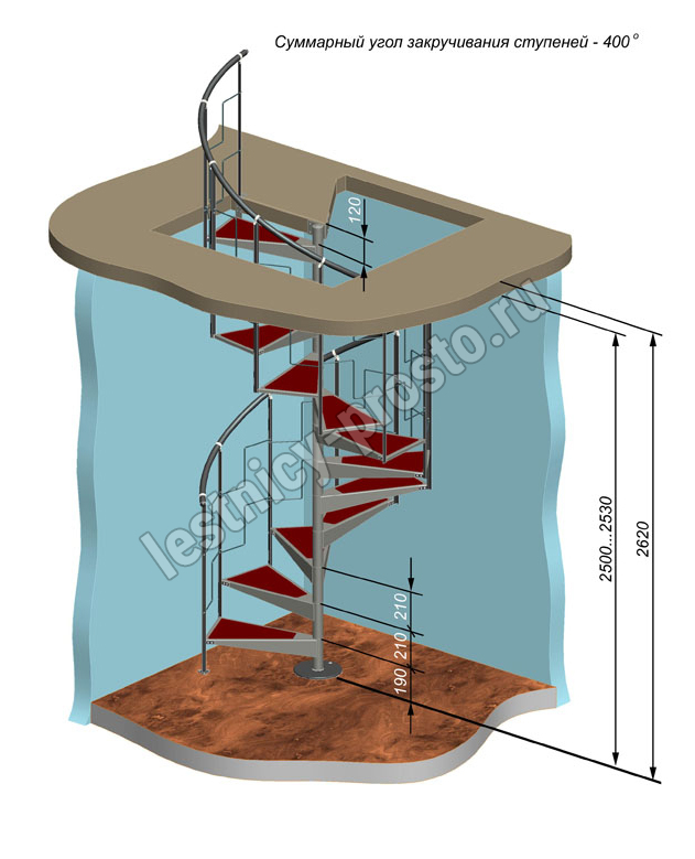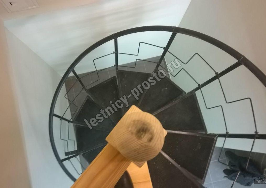 Компактная металлическая винтовая лестница КАСКАД. Ступени лестницы покрыты специальным антискользящим материалом.