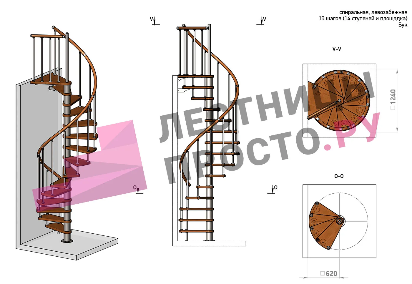 | Винтовая лестница Prosto Spiral Black D160см, h282.2-326,3 см, бук |