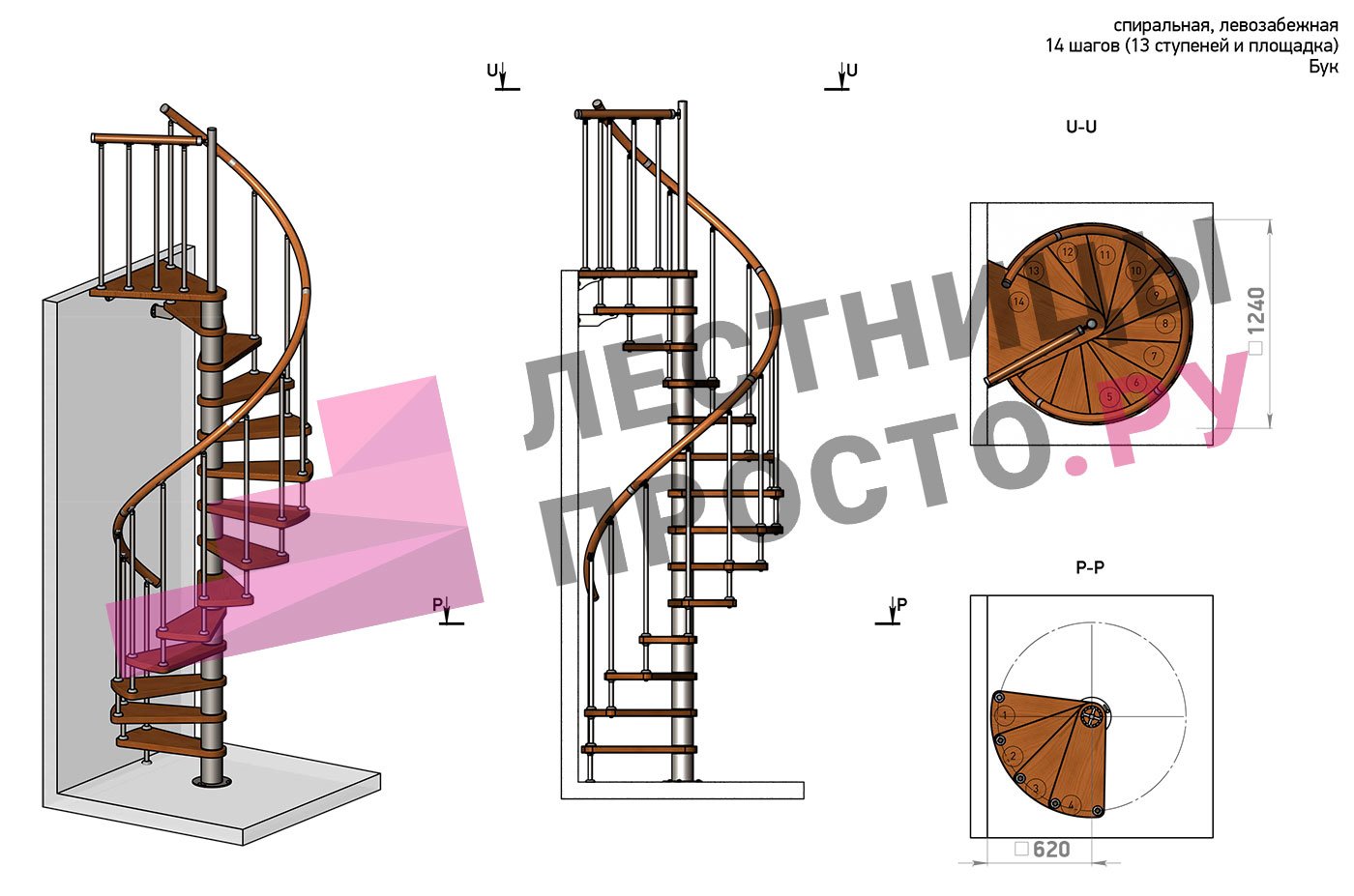 Решение о направлении поворота принимается при сборке лестницы - универсальная конструкция позволяет собрать правозабежную и левозабежную лестницы.