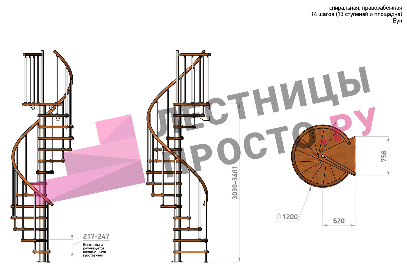 Высота ступеней регулируется с шагом 3 мм. в пределах 217-247 мм., благодаря чему, лестница прекрасно подгоняется под необходимую высоту.