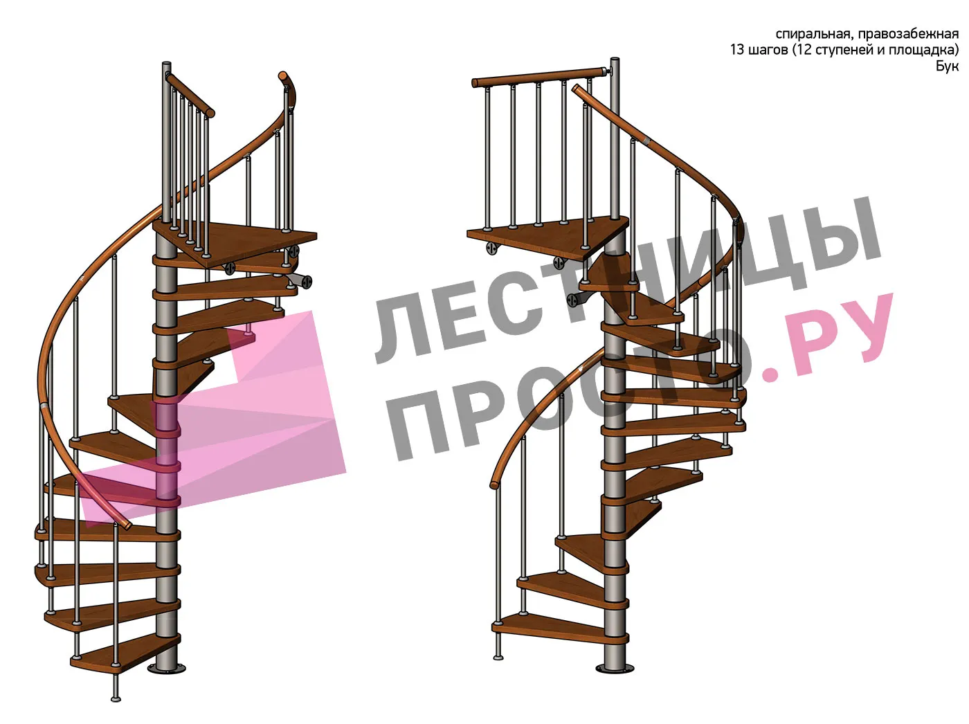 Правая, d=160см, 12 ступеней + площадка
