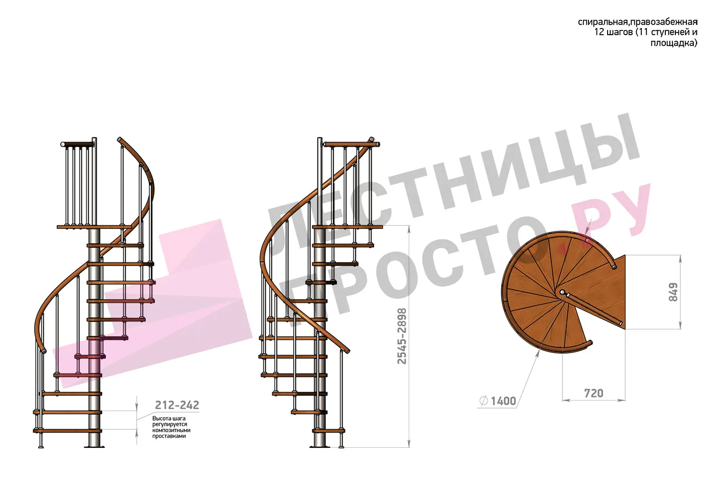 | Винтовая лестница Prosto Spiral White D140см, h254.5-289.8 см |