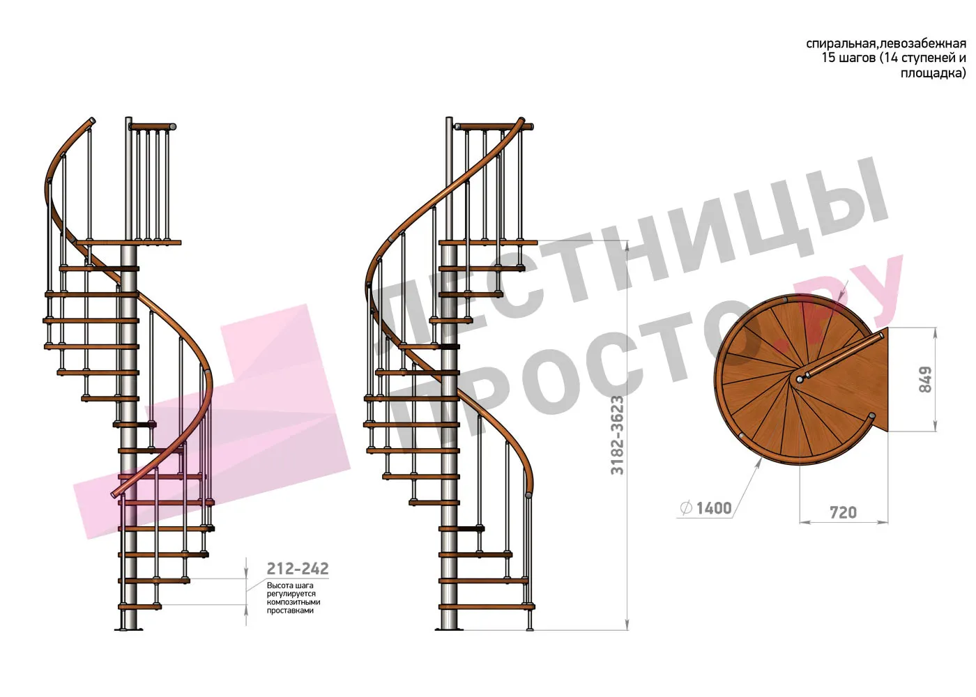 | Винтовая лестница Prosto Spiral White D160см, h318.2-362.3 см |