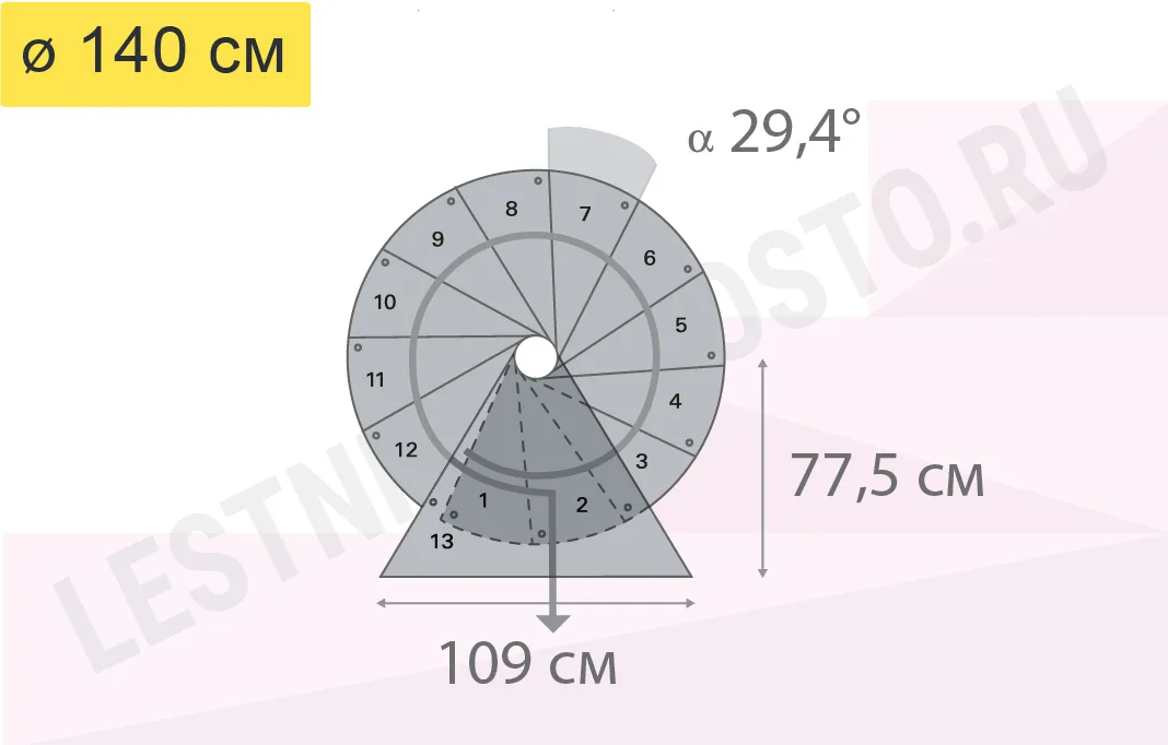 При монтаже лестницы, с помощью специальных пластиковых вставок, варьируется высота шага в пределах от 210 мм до 235 мм, за счёт чего общая высота лестницы может быть получена в пределах  от 2530 мм до 3060 мм.