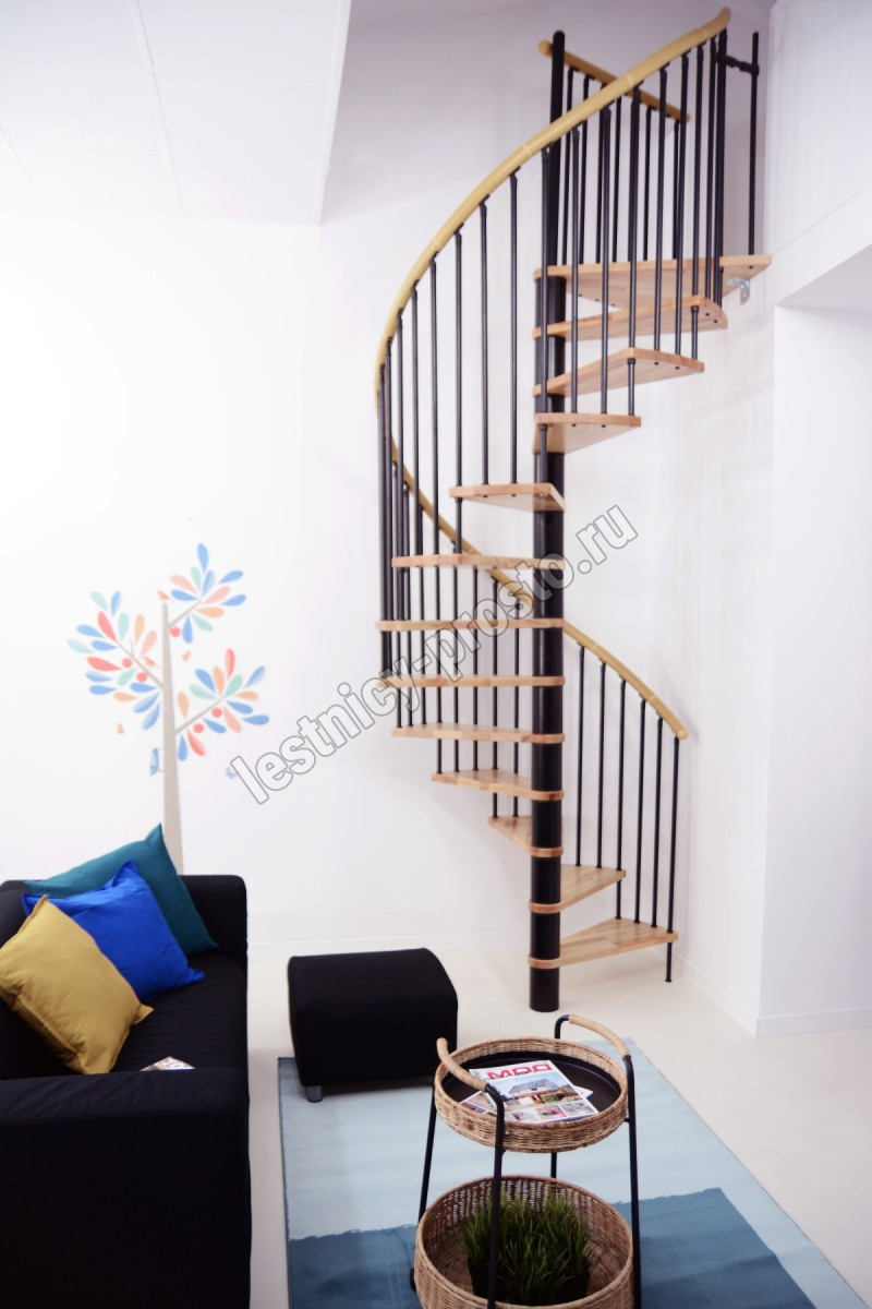 Винтовая лестница SPIRAL WOOD d160 см, чёрная, лакированный дуб
