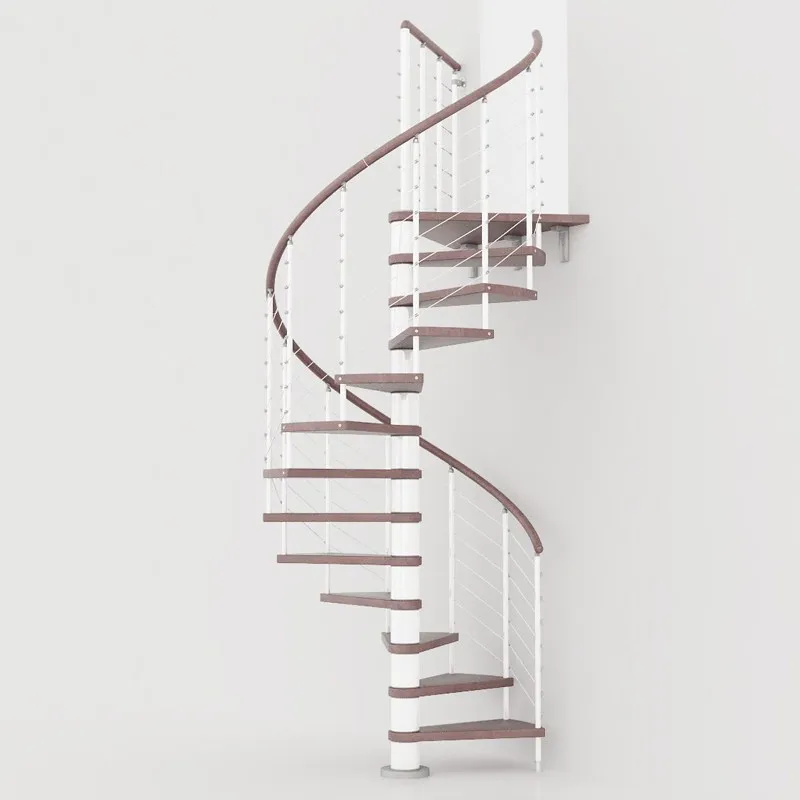 Благодаря возможности регулировать высоту шага с помощью пластиковых вставок (входят в базовый комплект), высоту лестницы можно варьировать в пределах от 2860 до 3090 мм. Кроме того, купив дополнительную секцию для этой лестницы, можно поднять высоту до 3320 мм. Ступени выполнены из сращенного дуба, покрыты износостойким твёрдым бесцветным лаком. Каркас серебристого цвета. Под заказ возможно изготовление лестницы другой расцветки.