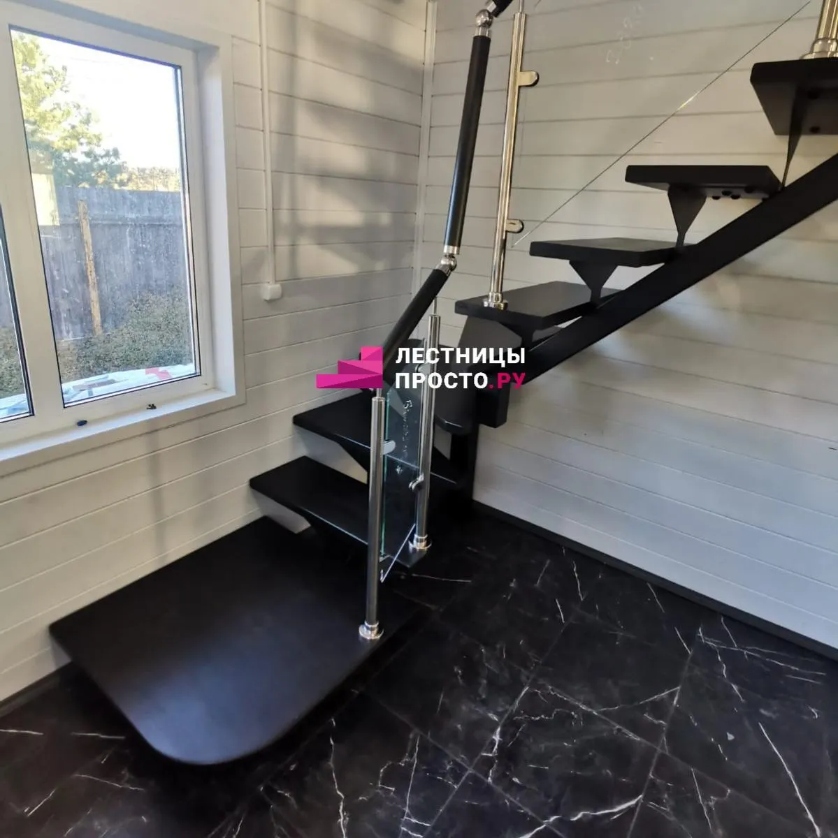 Лестница на центральном каркасе г-обр. металлик, ступени лиственница, LP-151021